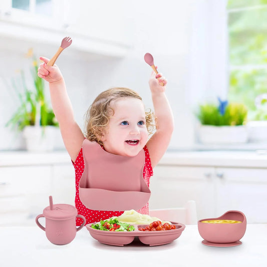 Pink Silicone Baby Feeding Set