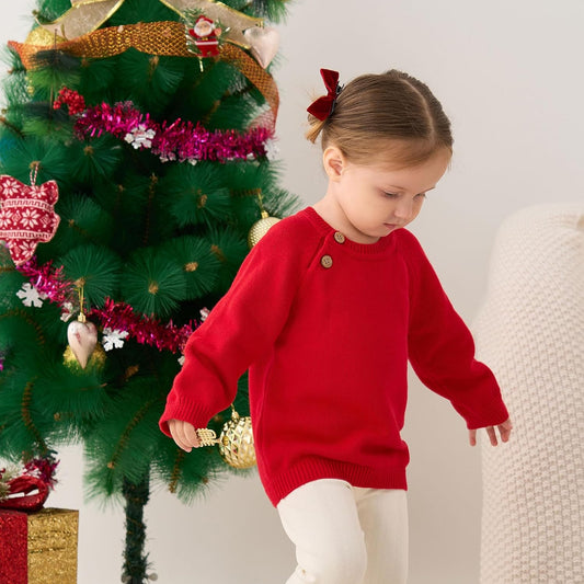 Baby Toddler Boys Girls Pullover Sweater Cotton Knit Button Closure Sweaters